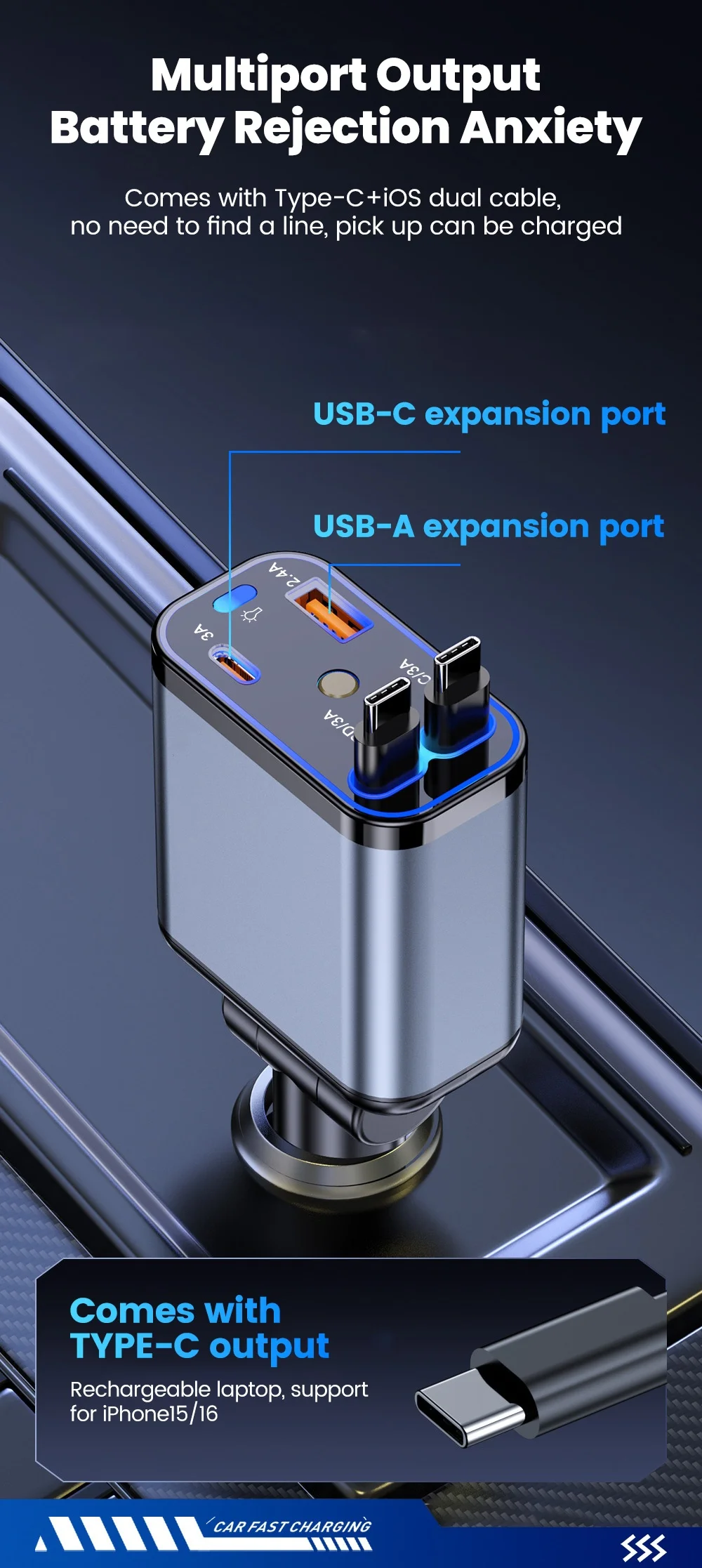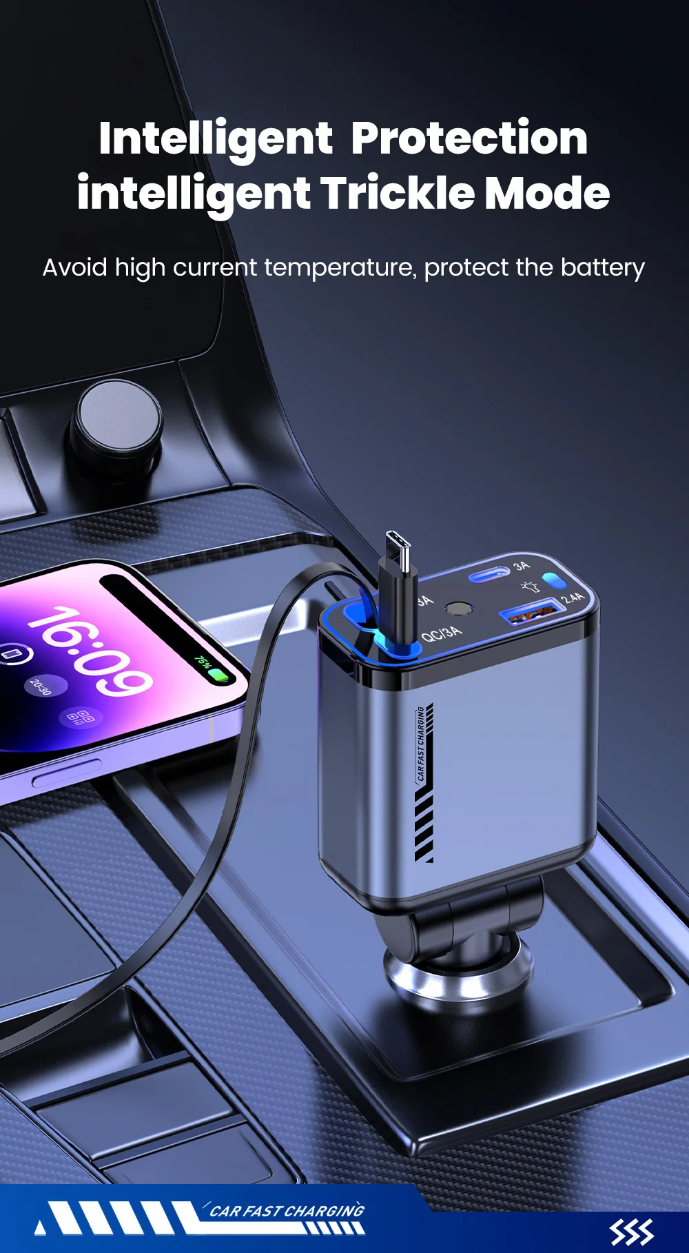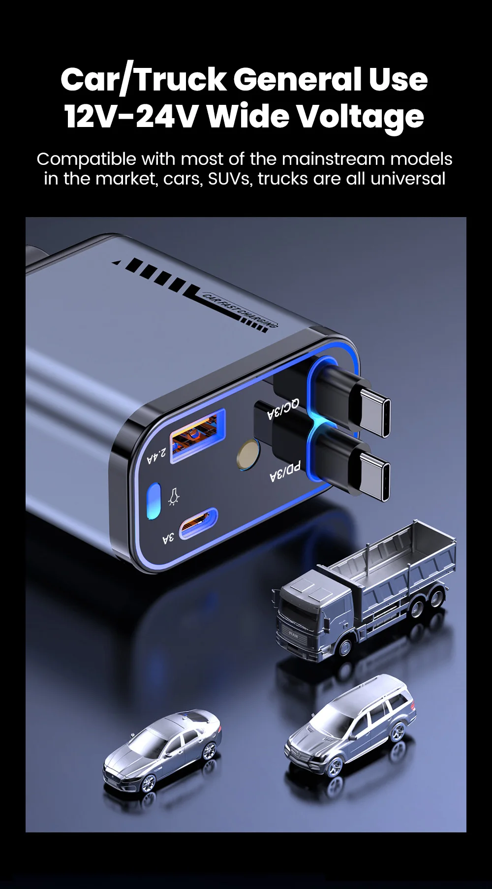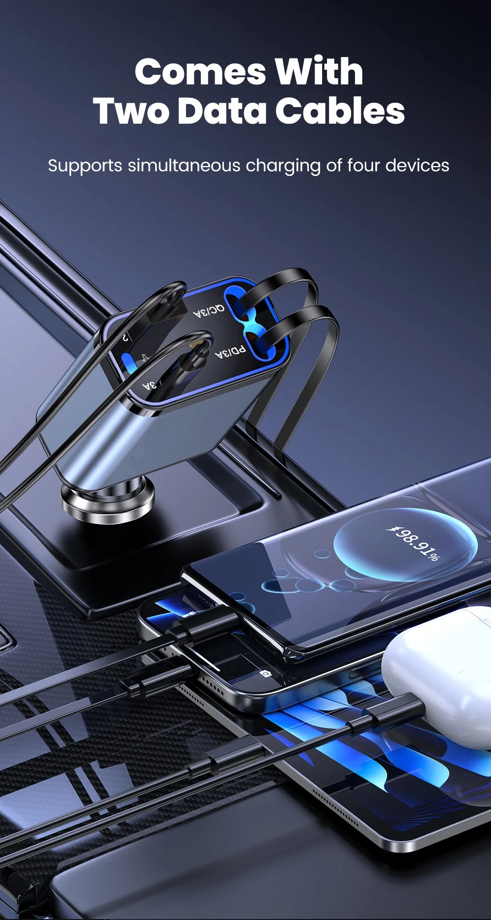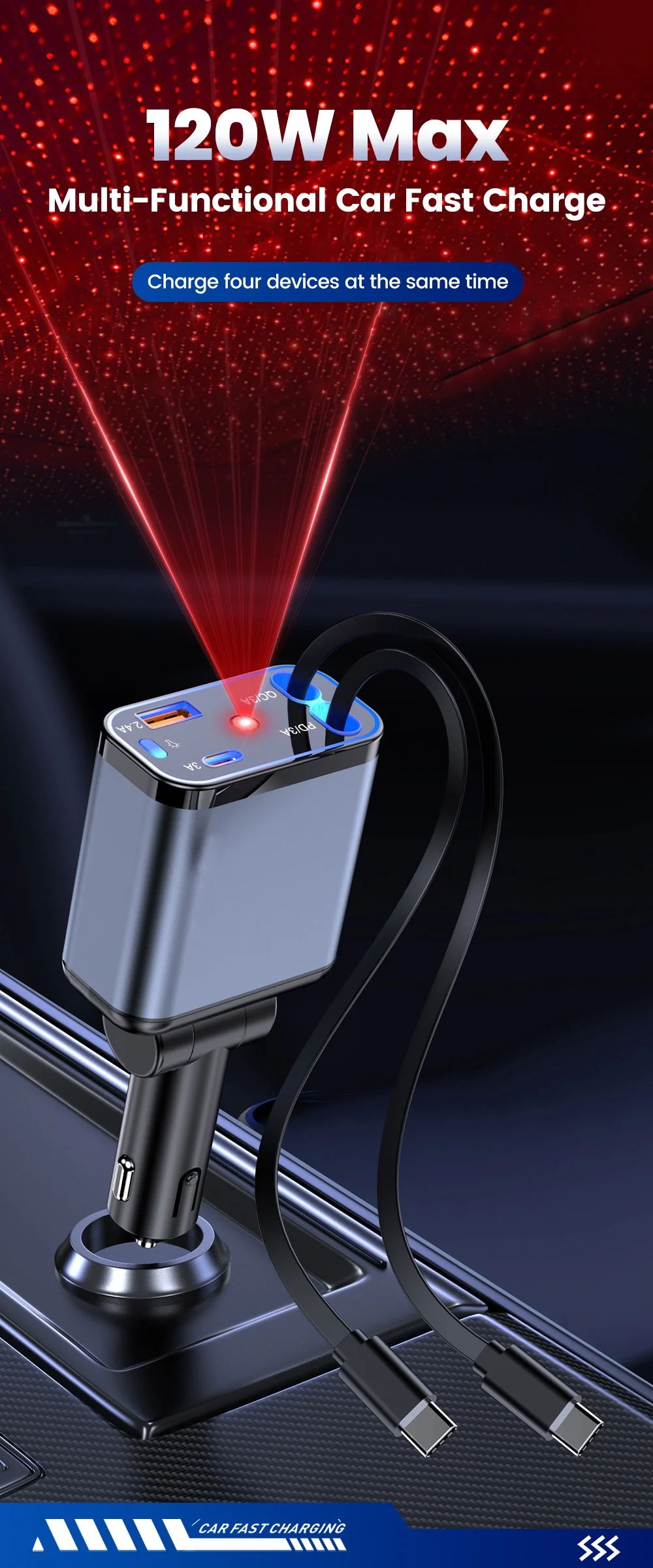 شارجور طوموبيل 4 في 1 فائق السرعة بقدرة 66 واط مع اضائة - قوة وأناقة فخدمة وحدة